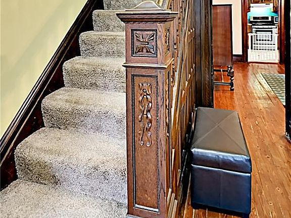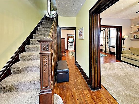 Inviting Avalon home! Covered front porch. Entry with original woodwork and hardwood flooring. Living room with pocket door and gas fireplace. Dining room offers glass-front built in plus decorative fireplace with beautiful wood surround and mirror insert. Updated eat-in kitchen with stainless appliances and large pantry. Second floor offers 3 bedrooms, updated bath, and den (currently used as walk-in closet). Third floor (unheated/cooled) offers 4th bedroom plus 13x12 walk-in storage closet. Covered rear porch. Vinyl fenced rear yard. Detached 1 car garage plus driveway for parking. Carpet updated '17. Updated roof, windows, electrical.