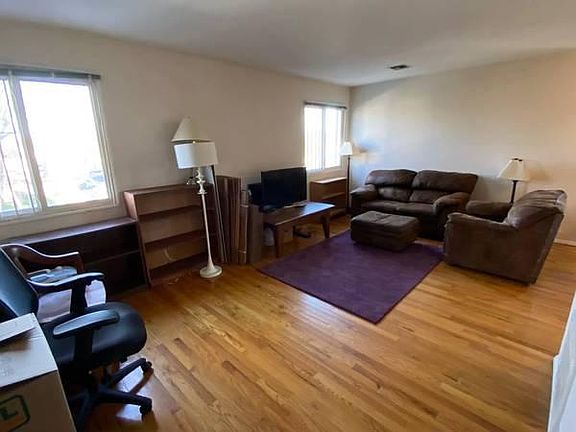 1st floor apartment in 4 unit building 1100 square feet approx. Hardwood floors throughout Central air Living room Dining room Kitchen comes with gas stove, fridge, dishwasher, etc. Stand up shower in master bedroom Shared laundry room in basement Walk-in storage closet in basement 1 car detached garage Large shared backyard, mostly fenced in Additional off street and on street parking Pets considered case by case, generally ok 10 minute walk to train station and downtown Top rated school system *Photos are of a similar unit* *Realtor fee due by lease signing*