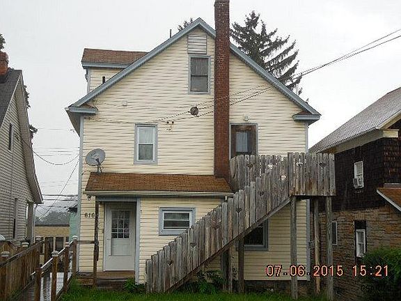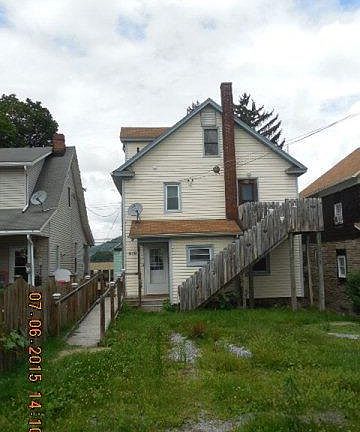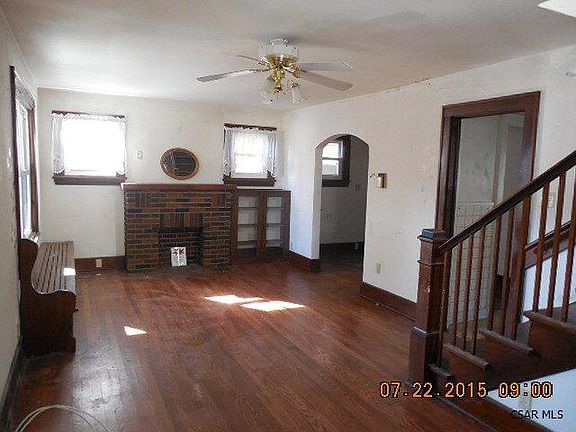 Newer Vinyl Exterior, Living Room w/Open Stairway, Brick Fireplace and Built-ins, Half of Dining Room has been used for Handicap Accessible Bath and Wheelchair Ramp to Rear Door. Three Bedrooms and Bath up, 2nd floor is Independently Accessible from Rear Stairs... Needs some TLC on the Inside! Rear 1 Car Garage