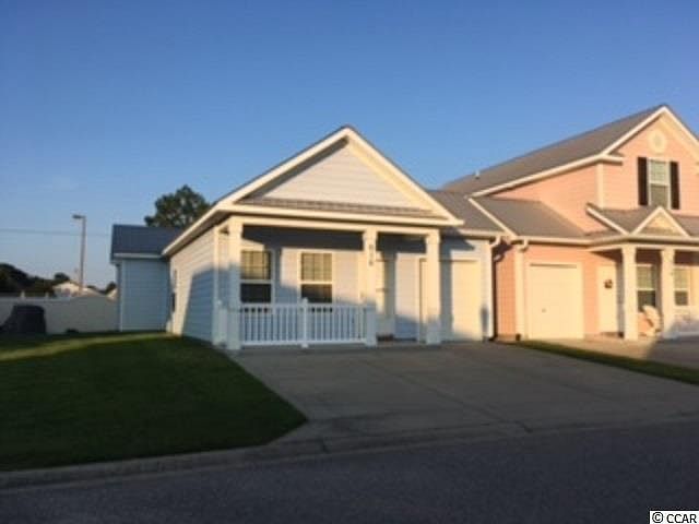 You won't want to miss out on seeing this beautiful 3 bedroom/2 bath Beach Cottage situated in a quiet community East of Highway 17! Located just a golf cart ride to the beach, this end unit has it all including one level living, a golf cart garage, a low HOA, a private backyard and patio area, lots of storage, a community pool, and much more! This cozy cottage has vaulted ceilings in the Living Room and Master Bedroom. The kitchen and baths have tile floors, granite countertops. Kitchen has stainless steel appliances. The laundry area has a full size stackable washer and dryer set that will convey with the home. The master suite has plenty of room for a King Size bed. Master bath has a step-in shower with two seats and a window for lots of natural light. Outside, you have an oversized concrete patio as well as a large storage room big enough for your bikes and beach toys. Out front you have a front porch, perfect for a rocking chair or two. The garage is perfect for your golf cart and extra storage, and a driveway which will accommodate three vehicles. The low HOA covers your building insurance, cable, internet, water/ sewer, trash, lawn care and landscaping, outside pest control, community pool, and your exterior maintenance including your hardi-plank siding and metal roof. The Cottages at Seventh is also a pet friendly community. Schedule a showing to see this condo today, it wont last long! No short term rentals allowed.