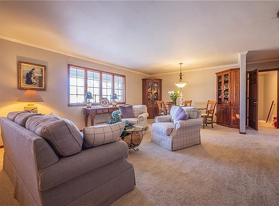 This must see one owner home features tons of extras! You’ll love the custom built in cabinetry in the living room and surrounding the fireplace. The kitchen has gorgeous cabinets with lots of drawers, pull outs, a built in desk plus a moveable island, solid surface counter top and eat at bar. Main floor laundry with half bath off kitchen and a sun room off kitchen with great natural lighting and wood floors. The main floor also has 2 bedrooms, a full bath and the master suite which is very spacious with walk in closet. The master bath has tiled shower, jetted tub and heated floors. Finished basement has 2 bedrooms, family room and bath plus nice sized unfinished area for storage. New heat pump in Fall of 2021.