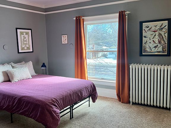 This space is a big, bright, beautiful room with private bath and private outdoor balcony. 2 large windows, carpeted room, central A/C + central heat plus additional boiler heat with in-room radiator. Remodeled private bath with tiled shower. 2nd-story balcony with space for a table & chairs. All common areas in the house are professionally cleaned 2x/week. 6 tenants live on-site in separate units with shared living areas and kitchen. Everyone is quiet, a working professional, and respectful of everyone's space. Our place is a 5,000 square foot home built in 1905, and is on the historic register. The woodwork inside the common areas is gorgeous. We used to be the Fernweh Hostel but we've shifted to long-term rentals in the last couple years. --We've got a backyard with hammocks, a gas firepit, plenty of seating, and a huge garden. --Shared kitchen has 2 fridges, 2 ovens, a gas range, organized food storage, and all the cooking utensils and smaller appliances one might need. Coffee, tea, spices, oils, and baking supplies are stocked weekly. --Co-working space inside the house for quiet work time, including a printer and other supplies. --Roku on the TV in the living room has Netflix, Max, Prime, and Xfinity Live TV. --Common areas are professionally cleaned and stocked twice weekly. Wifi, gas, electric, water, trash, heat, A/C, housekeeping, landscaping, and parking are included in rent of $1,275/month (additional $500 deposit upon signing). This room can come either furnished or unfurnished. **The bunk bed in the pictures is no longer in the room. A sweet dog lives here currently, but unfortunately I can't allow any additional pets, I'm sorry. Available for move-in anytime between now and June 1. 1 bedroom + 1 bath private room in Old Town home -- 616 West Mulberry St. $1,275/month flat rate, all utilities included. 1-year lease term firm (June 1, 2025 - May 31, 2026).