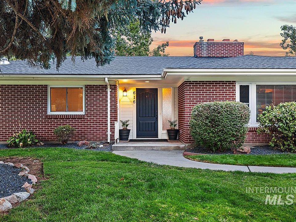 Ranch Road! Set in the low-lying foothills, just above the North End, homes on this popular street are highly sought after & seldom available to purchase. This iconic all-brick Mid-Century Ranch design is set on almost 1/3 of an acre! The home has been impeccably maintained & loved by its owners throughout decades, in fact making this the first time the home has been available to purchase outside of the family in two generations. The interior has been updated from the bottom, up (including a new roof)! The main level features large windows & glass doors overlooking the expansive flat backyard & mountain views. The kitchen is ideal for gathering & cooking, with a center island, upgraded stainless steel appliances & an open design to the great room. The idyllic location is two blocks from Highlands Elementary & 2 blocks from Crane Creek CC, and just moments from Hyde Park, and popular foothills trails!