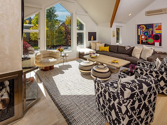 This beautifully redone 3 bedroom, 3 bathroom home on the sunny side of the street has big views toward Aspen Mt, a rarity in a West End home. Completely remodeled upstairs in 2020 with wide open spaces and finely curated detail.Ground floor master with walk out to a private patio and lawn. Two other bedrooms, one on lower floor has a gym area and can also serve as a media room. House is flooded with natural light and has AC, central vac, and a one car garage.