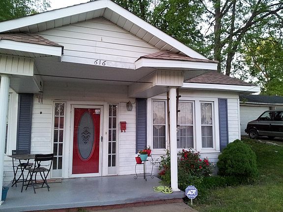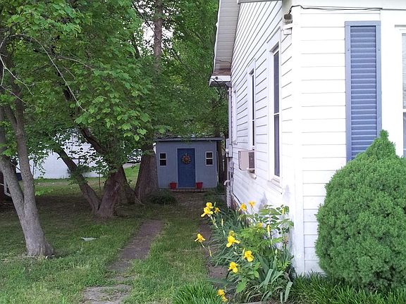 2 bedroom 2 bath with a workshop/storage building. A dining room with french doors off of the living room has a nook that fits a desk. Master bedroom has a full bath attached with expansive closet space. Built in shelving in the other bedroom as well as built-ins found in the guest bathroom and kitchen offer extra storage. This classic mid-century home has a dungeon/basement for a storm shelter and a large back yard with a wooden deck off of the back. Great location behind the Kindergarten Center and blocks away from the heart of downtown.