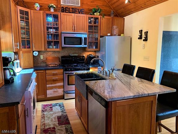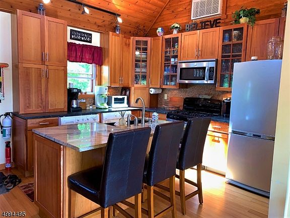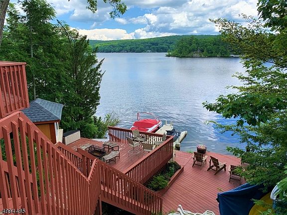 Escape to this Rare & Adorable Lakefront Cottage Home on Beautiful Upper Greenwood Lake. Finished with charming cedar siding, this special getaway home will take your breath away. The gourmet kitchen features cherry cabinetry, soapstone counter tops & center island with granite. Bamboo hardwood flooring runs through this home & is warm & inviting. The living room with vaulted ceilings, opens to the dining area with lake views. Warm those chilly nights with your wood burning stove. The cozy main bedroom has great closet apace & overlooks the lake. A charming second bedroom & updated bathroom with tub/shower complete the main floor. A freestanding stairway walks up to a loft / bedroom that views the lake. Out back are tiered decks with spectacular lakeviews & private EZ dock for your boat & jetski...AMAZING!