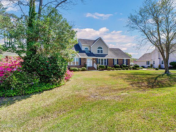616 Willbrook Circle is the rare opportunity to own a custom home built with quality materials and craftsmanship. Sitting high on an elevated .89 acre lot and bursting with color from the mature manicured landscaping, this one owner brick home with hurricane shutters was built to stand face to face with the environmental demands of Coastal Carolina and has always been diligently and lovingly maintained. Offering 4 bedrooms and 4.5 bathrooms, the days of sharing bathrooms are over! Every bedroom has an en suite bathroom. Bathrooms for everyone!! The warmth of real wood is spread throughout the home from the oak floors to the solid wood doors to the detailed wood trim. The oversized windows in the front of the home reveal a water view as you move from room to room. New River Plantation is a well established waterfront community with a unique waterfront pool, boat ramp, boat day dock, and another dock with roof to enjoy the water in the shade. From the community boat ramp so many adventures await from sunset cruises, Atlantic Ocean fishing, crabbing, shrimping, oystering, clamming, gigging and sandbars are all minutes away. Whether looking to retire and enjoy the incredible Coastal NC weather or relocating here for work you will appreciate being minutes from the beach, boating, golf course, shopping or work. Come enjoy Sneads Ferry's low taxes and the quality of life that Coastal Carolina has to offer!