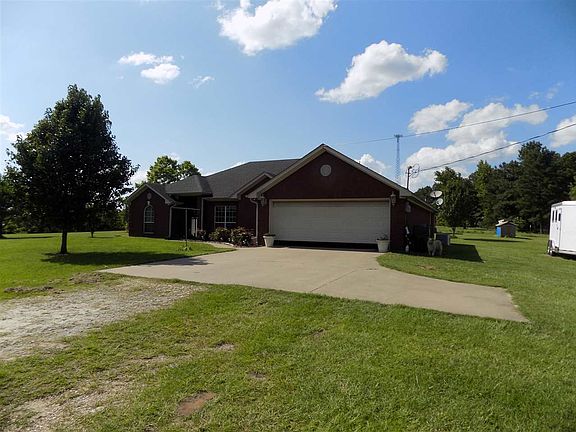 This is a beautiful house situated in the middle of 10 acres. The cozy red brick, 3 bed, 2 bath house features custom Ceramic Tile cabinet countertops in the kitchen and bathrooms. Property is located just out of the city limits and has easy access to schools, shopping and restaurants. The front yard is an amazing expanse of well manicured lawn and a long tree lined drive. The back part of the property is fully fenced and currently has horses there, with great pastures for grazing and partially wooded at the back end. All the water is Well provided to help reduce living costs. There is also a Communications Tower with an income producing lease at corner of the back end This could be an important asset to this property. The tower is leased to Verizon Wireless. The rights to this lease will transfer to the new property owners upon closing with the acceptance of an offer that includes terms acceptable to the seller. This currently produces a $400 plus monthly income. The Rights to this WILL transfer only if included in offer/contract approved by Seller.