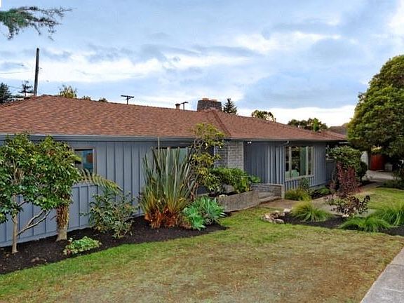 Exceptional mid century, one-level home w/ almost level-in entry. The perfect home for entertaining! Updated eat-in kitch, formal living & dining rooms, bonus family room/media room, hrdwd fls, 2 fireplaces,spacious master suite, flat yard w/ veggie beds & 2 car garage w/ workshop. Peek-a-boo views!