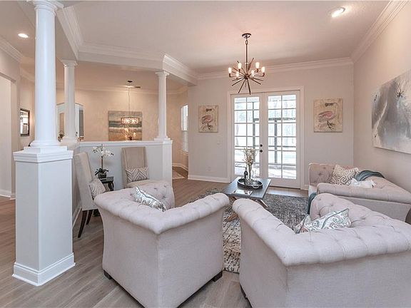 Located in one of the most desirable locations in all of Keene's Pointe, this golf front home has just been updated end-to-end with the most up to date finishes buyers are looking for in today's market. The final outcome of this renovation is nothing short of amazing! Designers were brought in to create color scheme and design flow that begins when you pull up to the curb in front of the home and walk up the freshly sealed paver driveway. That coordination continues until you exit the back of the home to the pool and spa overlooking the 10th hole of the Golden Bear Course. Essentially, nothing has been left in its original condition. Beginning with the home's location, on appealing Blakeford Drive; it is located in short distance to the Club and its many amenities. The home itself has 4 bedrooms, 3 1/2 baths, office, and the ever sought after 4 car garage that very few homes in the community enjoy. The home features absolutely beautiful, newly installed wood floors, granite countertops throughout, built-in bar with wine refrigerator, and tons of storage. For outside enjoyment, a newly screened porch runs the entire length of the back of the house, making it comfortable to take in the beautiful weather and golf course. The pool and spa are illuminated with a dark bottom, tanning ledge, and remote control operation. Almost no other home in Keene's Pointe on the market has been updated as recently and as thoroughly as this one
