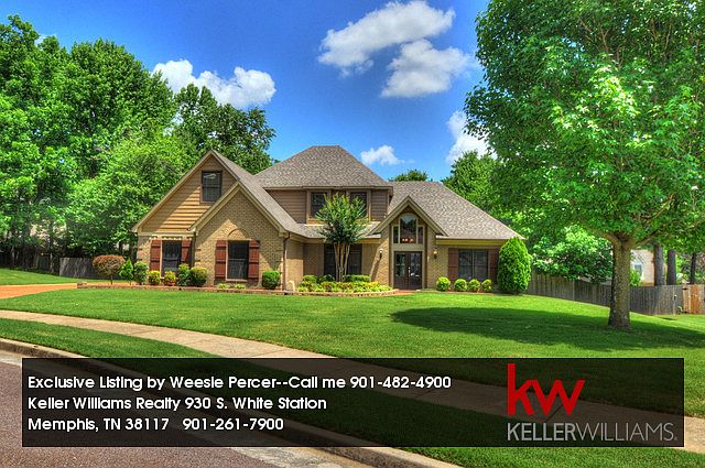 Exclusive Listing by Weesie Percer 901-482-4900 Keller Williams Realty 930 S. White Station Memphis, TN 38117 901-261-7900 Large Bartlett home in cove w/inground pool! 3 car side-load garage. Updated kitchen w/granite & SS appl, roof 4yrs, 2 bdrms down, 3 + bonus up. Kitchen, breakfast and hearth (w/plantation shutters) are large and open. Walk-in pantry, walk-in laundry. 2 closets in master. Real hdwd in living room, dining and hallway. Large kit w/lots of counter and cabinet space. Walk-in attic. Great backyard w/pool and plenty of privacy. Home has a really nice and easy flow. Seller has made many improvements!
