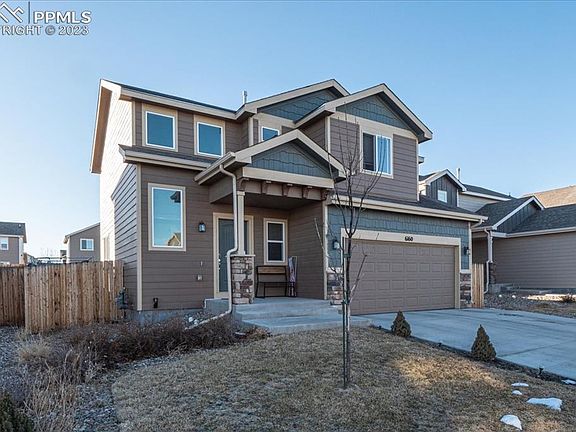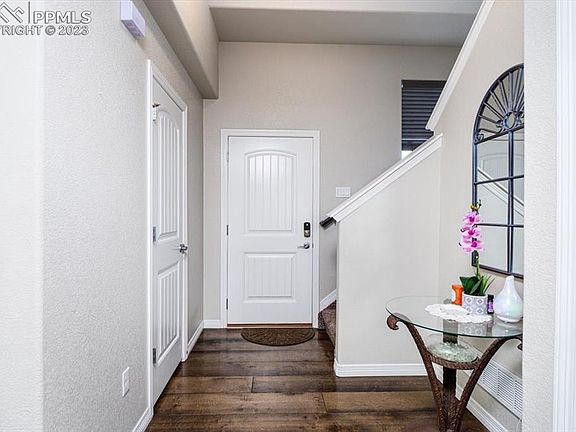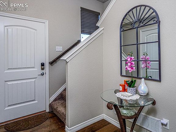 Conveniently located in the Lorson Ranch Neighborhood. Close to Fort Carson Army Base, Peterson Air Force Base, new K-8 School, and walking trails. The attractive floor plan has three bedrooms and three baths plus a full crawl space (great for storage). Hardwood entry, kitchen, & dining room. Stainless steel kitchen appliances and birch cabinets with crown molding. Recessed lighting in kitchen, lighted ceiling fans in great room and primary bedroom. Open floor plan, two-story entry, and upstairs laundry room.