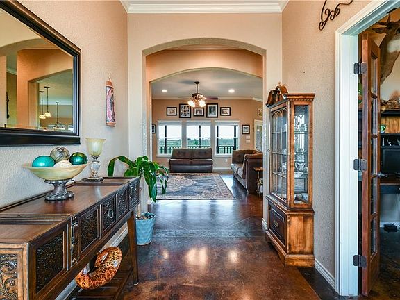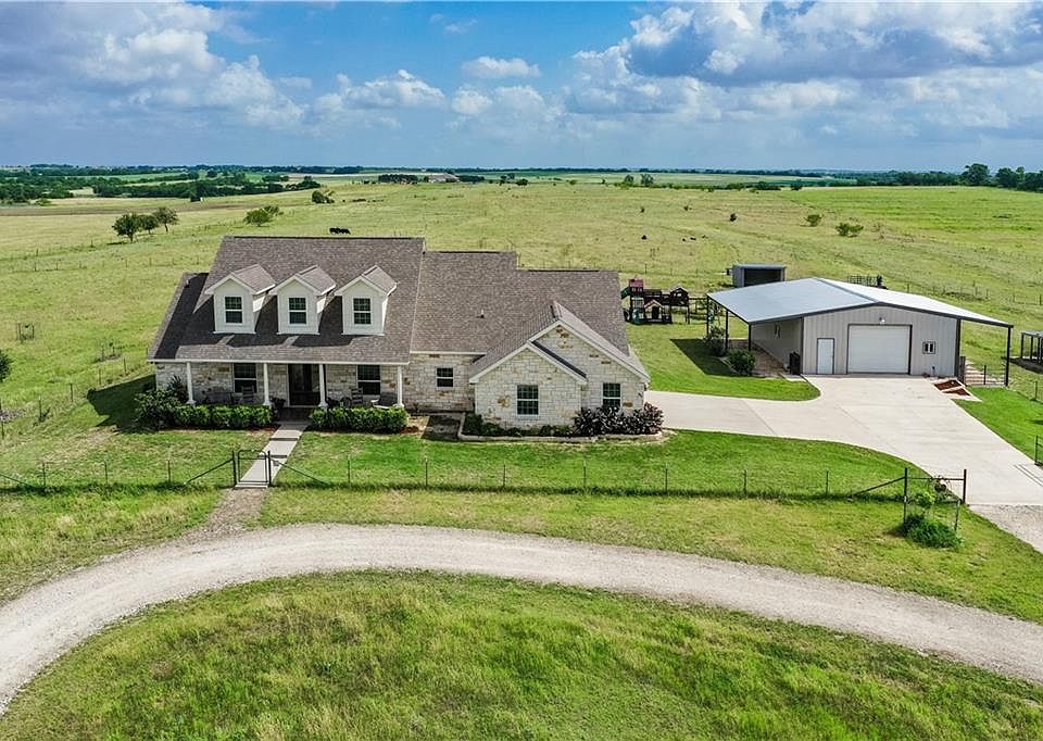 This stunning home is situated on over 8 acres, with breathtaking views in every direction. From the open-concept living and dining spaces, to the study, and hobby room, there is plenty of space for everyone to enjoy. The second floor game room features a full bath, and could be used as a fourth bedroom. There are countless upgrades and special features, such as walk-in closets, a storm shelter, the over-sized pantry, and well-planned attic storage. Outbuildings include a large workshop with a kitchenette and half bath, a shed, and the perfect chicken coop! Whether you spend your afternoons by the stock tank, working in the vegetable garden, or watching the sunset from the front porch, this home is sure to be your perfect retreat.