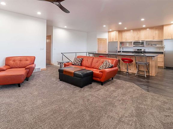 This newer home (built by Mindt Construction) is located in the two-mile radius of Minot city limits, close enough to have all the amenities, yet far enough that the spacious 2+ acre lot is private. SIP (Structural Insulated Panels) and Marvin brand windows give this home energy efficiency ratings that far exceed those required by code. The heated garage is an outstanding feature with 13' sidewalls and 2400 square feet of space to accommodate up to six vehicles, and a large private workshop. Energy efficiency was key in selecting the zone-controlled furnace and A/C units and appliances. The kitchen of this open-concept home boasts custom built maple cabinets, an oversized island that has deep cabinets on both sides, and a walk-in pantry with adjustable shelving. A large bathroom featuring multiple shower heads, Corian shower walls, and double sinks in the oversized vanity in the master suite. The master closet is a must-see, with multi-positioning LifeSpan closet shelving and hang rods, the configuration of the space is endless and can be adjusted to meet your specific needs. The lower level of the home is finished to mirror the open-concept of the upper level, and the separate home theater room has been insulated for sound. The theater room can very easily be converted into a 5th, egress bedroom! Please ask your agent for the Features pdf in Associated Docs to see more about this home.
