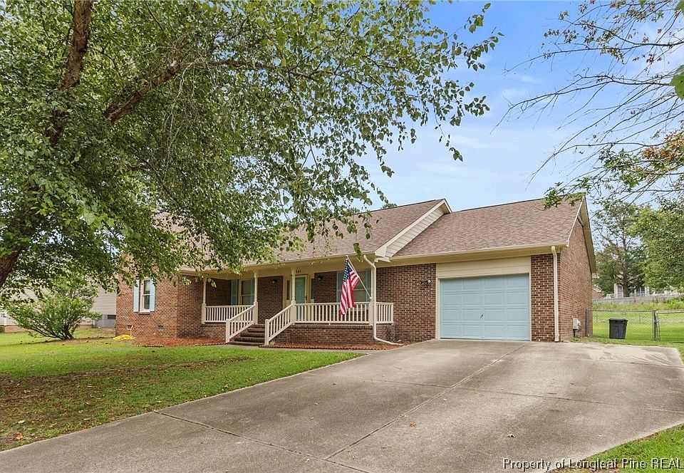 Come check out this adorable starter home in the desirable Jack Britt School district for under $230,000! This 3 bedroom, 2 bathroom home features a large front porch, foyer, dining room, living room, eat in kitchen and a single car garage. The kitchen features granite countertops, stainless steel appliances, gas stove and tile backsplash. The living room has a beautiful gas log fireplace and lots of natural light. The spacious primary bedroom has a nice walk in closet and a tile surround in the shower/tub. The spacious backyard is fenced and ready for all sorts of activities.