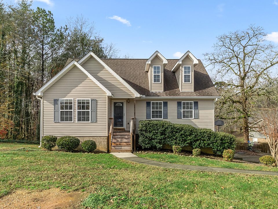 The Master is on the main level and exhibits vaulted ceilings, a walk-in shower, double vanity and a soaking tub. The main level also displays a living room with hardwood floors that opens into the kitchen and dining space as well as a tile half bath and laundry room with washer and dryer hook up tucked away. There is a new screened-in back deck off the kitchen that shields you from the rain and sun while still enjoying the quietness of Hixson.
