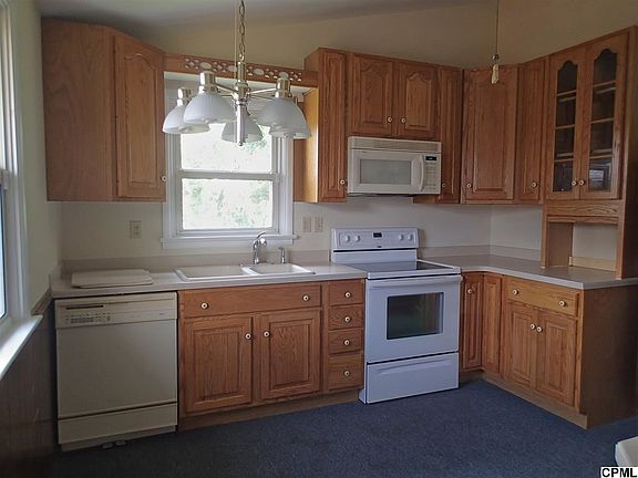 Rutherford Rancher with large enclosed breezeway, oversized two car garage located on a double lot. Exposed finished lower level with third bedroom, gas heat, central air, wood stove and remodeled kitchen with 42" oak wall cabinets, newer appliances and corian counters. Lower level could serve as an in-law quarters. Vaulted living room ceiling and hardwood floors. Large yard with area to build or garden. Come take a look!