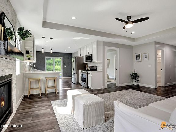 Welcome Home.... .This custom built home located in the heart of Wasilla is wonderfully equipped with Quartz countertops,LVP flooring, open floor plan, stunning kitchen with tiled backsplash. Incredible master suite complete with dual vanities, walk in closets and an abundance of natural light. Beautiful fireplace with stone to ceiling! Step ceiling for a more open and airy feel ! This is a must