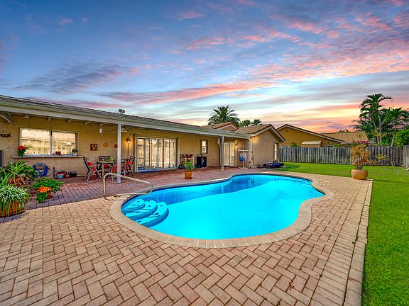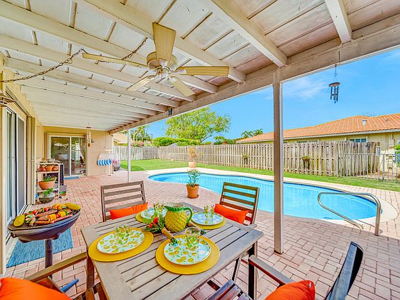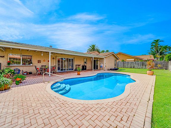 Spacious & open home features 3 bedrooms, 2 baths, a huge living room, formal dining room, big family room, plus a sparkling swimming pool and an oversized 2 car garage on a HUGE 11,600 sqaure foot corner lot on a cul-de-sac. Open the sliders that lead to the covered patio & pool area. Large master suite has a huge walk-in closet and an En-Suite separate shower and sliders the lead to the pool/patio and backyard where a tropical Paradise is awaiting you. Also a great place to relax or entertain. Covered patio w/ceiling fans, fenced in backyard w/a large green grassy area, which would be perfect for a playground plus it offers tons of privacy. Accordion shutters on all windows & doors make it super easy for hurricane protection! Inside laundry room with tons of storage. No clubs to join. Pets ok. All ages ok! Located in the exclusive neighborhood of Woodbury in Boca Del Mar in a convenient but tucked-away location in central Boca Raton, where homes are seldom available for sale. Located near Town Center, fine dining, & AMAZING SCHOOLS include Verde Elementary, Omni Middle, and Spanish River High School. Walk to YMCA. S-Tile roof from 1999 with 10 years life remaining and flat roof 2011 with 5 years of life(see attached 4 pointe inspection report attached). A/c 2019 and water heater 2020.