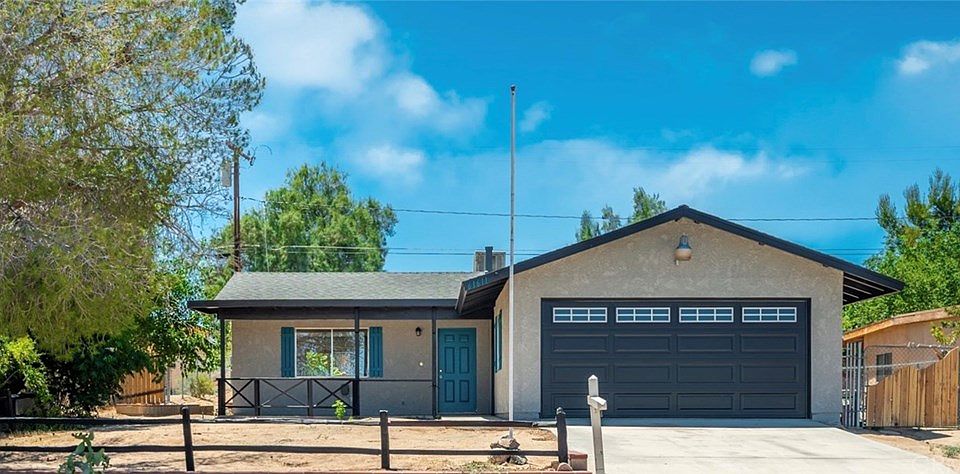 Move in Ready home located on a huge lot, features 2 bedrooms, 1 bathroom, 2 car garage, fenced in yard, large side yard with plenty of room for RV or boat. New laminate wood, new carpet, new paint, new roof, new garage door, timeless white kitchen cabinets and countertops, spacious and open floor plan. Beautiful mountain views, home is located just 60+- miles from Redlands and 35+- miles to Palm Springs.