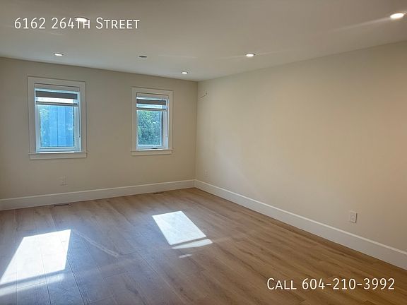 Bedrooms: 2 Bathrooms: 1 Pets: One Small Pet Parking: 1 Spot In Driveway Utilities: Included Available: Now One Year Lease Required Security Deposit: Half Month Rent Be the first to live in this beautiful, brand new 2 bedroom, 1 bathroom above-garage coach house. This bright and spacious suite features modern finishes, in-unit laundry, and an open-concept layout. Includes one parking spot in the driveway. Great location in a quiet neighbourhood to book a viewing. Reference the address: "6162 264th Street- Coach House"