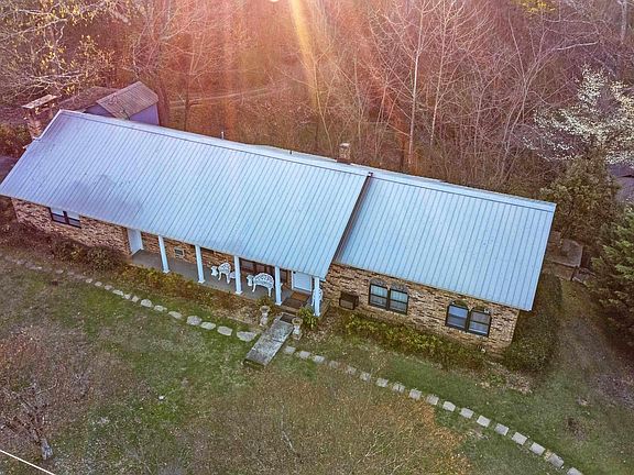 Welcome to this UNIQUE and ONE OF A KIND manufactured home FULLY BRICKED with permanent foundation PLUS ACREAGE!! This truly is a rare find!! The home boasts so MANY amenities and features with a metal roof, an addition on the back with a sunroom and office, two full kitchens and one has brand new stainless steel appliances, 2 full baths with lovely tiling in both, new carpet, new paint, updated light fixtures, dining room plus breakfast nook, and possibly an additional 3rd bedroom. There is a sketch of where the 3rd bedroom was previously by the secondary kitchen and 3rd bathroom. There are a couple of storage buildings on the property to use as you prefer and a storm shelter. There are wonderful fruit trees and a spring fed pond that's absolutely GORGEOUS and breathtaking views at the top point of the property. You really have to see it in person to appreciate all this AMAZING home has to offer.