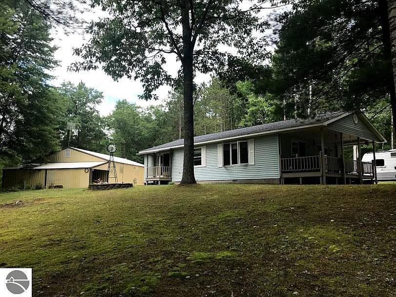 Nestled in the woods, with no neighbors in sight and just minutes from the Manistee River, this newly remodeled BOCA home is clean and move in ready! This is the perfect "UP NORTH" get away! Sitting on 10 acres with Adams Creek frontage, this home features an open floor plan, large covered porch, master bedroom with private walk out, 48x32 Pole Barn with 16 foot carport! New Roof in 2010, in-floor heat boiler in 2019, new water heater 2012 and the crawl space was insulated through Foundation Systems of Michigan in 2018 (no dirt floor), new paint, all new flooring throughout, seller owns the propane tank! This place has been well cared for and is ready to go!