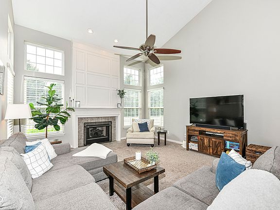 Beautiful floor plan with tons of large windows and natural light! Two-story entry with crown molding, hardwood floors on main level, dining rm, dedicated office w/french doors. Gorgeous two-story great rm with cathedral ceilings & fireplace. Open to the spacious kitchen w/gas cooktop, double ovens, 2022 Boesch Dishwasher, 2021 Refrigerator, granite island. Large master suite w/vaulted ceiling, 2 walk-in closets, tiled bath w/double vanity, separate jacuzzi tub & shower, walk-in closet. Brand NEW HVAC in 2023! Finished basement w/9' ceiling & recessed lights has fun for everyone: theater area w/projector, projector screen and sound system. Bar w/fridge & kegerator, billiards rm and full bath! Pool table stays. Big, private backyard, patio, newer fence. 3-Car garage. Hook-ups available for hot tub. Roof 6 yrs old. Move-in ready!