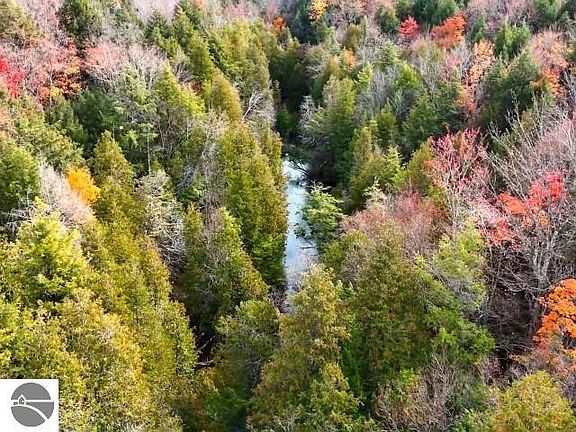 Designed by a museum exhibit architect, this timber frame cottage stands among the trees in the Cedar River Valley. A gravel driveway winds to a seculded spot featuring a well built home for weekends, summer residency, or year round living. On 6+ acres, explore 260 feet of the Ceder River on the northeast side of the property or meander to the fit pit and listen to the soothing river sounds. Inside you'll find a wide open space with beautiful windows to bring nature in and plenty of natural light to show off the Western Red Cedar and Brazilian hardwood floors. There is a gorgeous kitchen with granite countertops, maple cabinets, and stainless steel appliances. Check out the use of metal hangers from an old industrial warehouse - these little details blend modern and old in the best way. The upper bedroom has a sitting area which is highlighted by the tall pine ceiling and railings. The railings and built in shevles were hand made by the architect. The foyer tile by the side door is also handmade. Unique bathrooms; one has a walk in shower with stone tile and copper clad walls. The outside 14 x 20 workshop would make a sweet artists den, writers cave, or kids play area. From here you are only ten minutes from local attractions like Shanty Creek Resort. This is a rare find ... come look today.