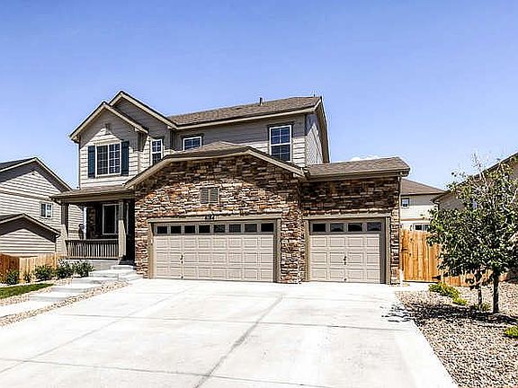 A must see 5 bed, 4 bath home located close to many great things in Aurora: Aurora Reservoir, Southlands Mall, E-470 and more! This beautiful home has many wonderful things to offer such as newer construction, three car attached garage, great landscaping and beautiful curb appeal. Inside you'll be greeted by a bright floorplan with stunning engineered wood flooring. Just off the entry is a living space or space that could be used as a dining room. The kitchen has wood cabinets, stainless steel hardware, granite countertops, custom glass tile backsplash, a large island and gas range. Adjacent to the kitchen is a large family room with fireplace. Upstairs you will find four spacious bedrooms including a large master bedroom with stunning five piece master bath with huge walk in closet. The finished basement contains one additional bedroom and bathroom. Outside, this home has a large fenced in backyard and patio with fire pit.