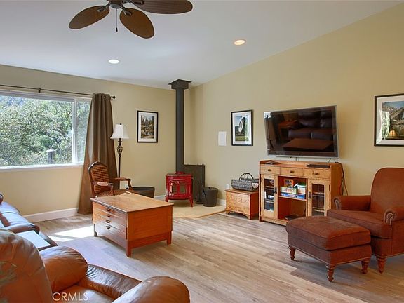 Welcome to 6164 Sherlock, your rustic hideaway nestled on a 19-acre canyon retreat, surrounded by the serene beauty of nature. This warm and inviting three-bedroom, two-bath home is a turnkey gem that would make a fantastic vacation rental or weekend home. As you step inside, you'll be captivated by the limestone entry and the exquisite finishes throughout, including granite countertops and custom cabinets by local craftsman Alan Dayhoff. The open floor plan seamlessly connects the well-equipped kitchen with a Kitchen Aid glass top stove and the cozy living room featuring a Vermont woodstove on a limestone floor. There is also central air and heat, creating a perfect space for creating memories with your loved ones and entertaining guests. The property setting is truly magical, with the perfect amount of morning sunshine and daytime shade, offering complete privacy and tranquility. The canyon location, next to Sherlock Creek, provides a serene backdrop to enjoy nature and starry nights, making it an ideal retreat for friends and family to gather and create cherished. The 19 acres are not all usable but they provide PRIVACY Beyond the home, the location offers an array of outdoor activities for nature enthusiasts. Local markets, restaurants in nearby Mariposa, and hiking trails at Stockton Creek are just moments away, while Yosemite National Park is a short drive, offering world-class adventures. Don't miss this unique opportunity to own a special piece of paradise in the mountains - a cozy home that offers a serene escape, modern convenience, and the potential for rental income. Experience the magic of 6164 Sherlock for yourself and make it your perfect mountain retreat. Schedule a showing today and let your dreams of mountain living come true!
