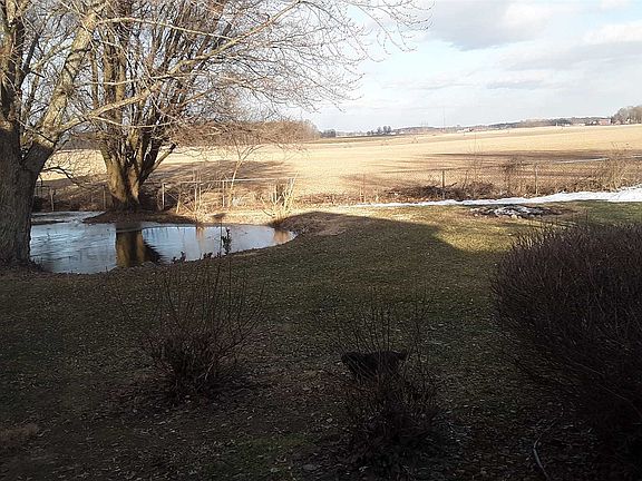 Updated, meticulously maintained and beautifully decorated quad. Totally fenced rear yard with pond, strg shed, deck all overlooking farm field. Interior has many updates as well as a large 4 season sun/family room off back that overlooks beautiful yard. Master bedroom is very large, all rooms are good sized. Full bath on upper and lower levels. Kitchen has lots of cabinet space, stainless steel appls and shows very well. Large formal Dining room as well as two separate living areas. 3rd bedroom currently being used as a gym. All electric home with geo-thermal heat. Newer mound septic system. Wood floors throughout main level, carpet upstairs and down. front storage shed not included but could be negotiable. Pond is for geothermal and has fish in it. Landscaped nicely. Nothing to do here but move in!