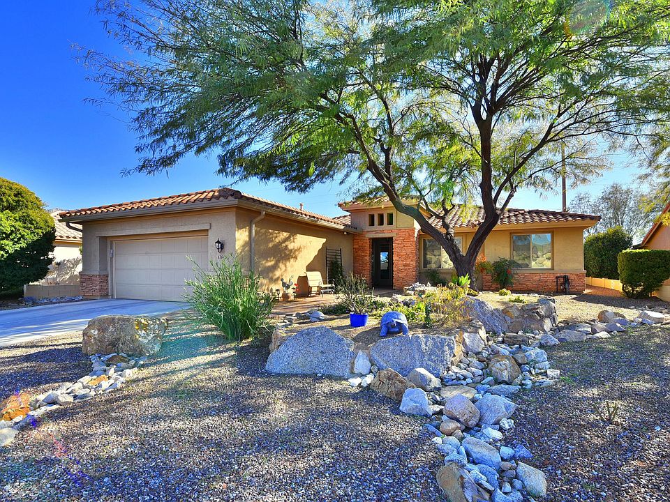 Amazing like new Saddlebrooke Cimarron model. One of the best homes in Saddlebrooke is this extensively updated 2 bed 2 bath + Den luxury home with mountain views. Inside this home has it all with a chef's kitchen complete with extensive cabinetry, granite slab counters, SS appliances, finished with a posh custom brick backsplash. This Cimarron features an unbeatable floorplan including giant sized great room, coffered ceiling, and foyer. Split beds provide privacy. Master bedroom offers a super sized closet fit for royalty! Brand new baths with new luxury tile surrounds + light/ faucets make for a move in ready opportunity. Lots of large windows shower the home with natural lighting inside Outside provides premium mountain views and a master gardener's paradise. Schedule your s