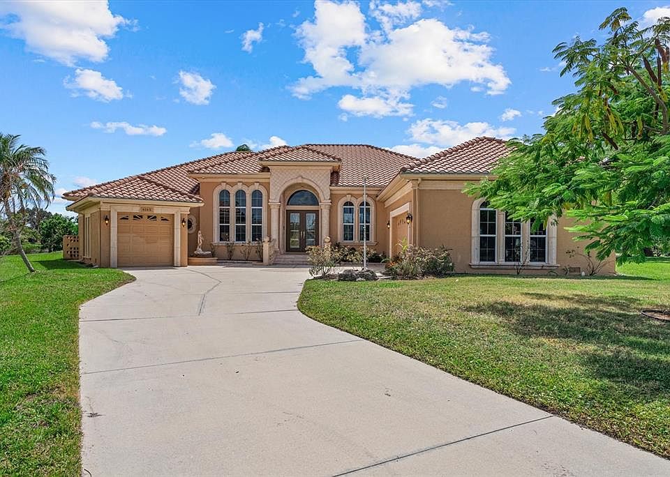 Welcome to your custom-built home in Cypress Creek Estates, a quiet and tranquil community tucked along the Manatee River in the heart of Bradenton. This sought-after neighborhood offers spacious lots, privacy, and the perfect setting to enjoy the Florida lifestyle. Designed and carefully built by the current owner, this home makes a lasting first impression. As you arrive, the long driveway guides you to a grand entryway. Step inside the double doors and you're greeted by soaring ceilings and a dramatic wall of glass that fills the home with natural light and open to the expansive screened lanai. Serene lake views set the stage for relaxed afternoons or lively gatherings. The large pool deck, sparkling pool, and fully equipped outdoor kitchen with grill and prep space make entertaining a joy. Inside, the thoughtful layout provides room for everyone with three spacious bedrooms, a dedicated office, and a versatile den/library. A split three-car garage flanks each side of the motor court, offering function and curb appeal. The chef's kitchen is a true highlight, complete with a wet bar, beverage cooler, and seamless connection to multiple living and dining areas that adapt to both formal entertaining and everyday comfort. From its inviting indoor spaces to its resort-style outdoor living, this home offers the perfect balance of elegance and ease. Welcome to your piece of Florida paradise. Reach out today for your private showing.
