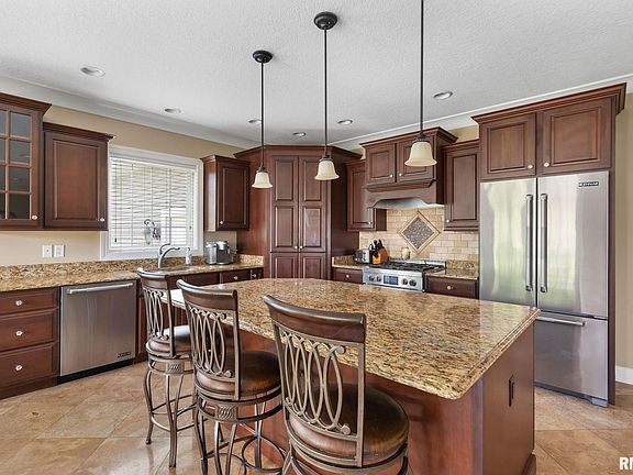 This is just what you have been waiting for! Meticulously maintained custom 2 story in desirable Lakehurst with over 3,500 square feet finished! Open concept great room with gas fireplace and eat in kitchen dining space. Beautiful kitchen with custom cabinets, pantry, island, island with breakfast bar, & stainless-steel appliances. The slider off the kitchen leads to large patio with gas firepit, playset, and level yard located on a cul de sac, .56 acre lot. Main level mud room & laundry room off the HUGE 35x28 3 car attached garage. Upstairs has 3 large bedrooms. The primary suite has a large attached full bathroom with huge walk-in tile shower, dual sinks, and walk in closet. The finished basement has a large rec room, full bathroom, built in bar area, ample storage, and egress window for future 4th bedroom. Bettendorf Schools. Convenient location near shopping, schools, parks, and interstate access!
