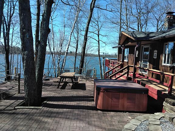 Southern Exposure and 116' of sand frontage on Garth Lake you will find this lovely 3 bedroom, 2 bath home. Open concept kitchen, living and dining room. Master Bedroom Suite with whirlpool tub, separate steam shower, 2 sinks and private deck facing the lake. Great views of the lake from many of the rooms in the home. 3 season porch with easy access to the lake side porch. The fully finished walk-out lower level has a Great Room with a fieldstone fireplace, wet bar and a Rec Room. The outside circle drive makes it easy to access the 1 car, drive-thru garage and the insulated 3+ car garage, both detached from the home. Lots of storage for vehicles and toys. The landscaping is gorgeous with stone walkways, paver patios, private ponds and fire pits to roast those marshmallows. An extra bonus is a new furnace, water heater and refrigerator all added in the Summer of 2018. This property is made for you to enjoy outdoor living and is an amazing Northwoods retreat!