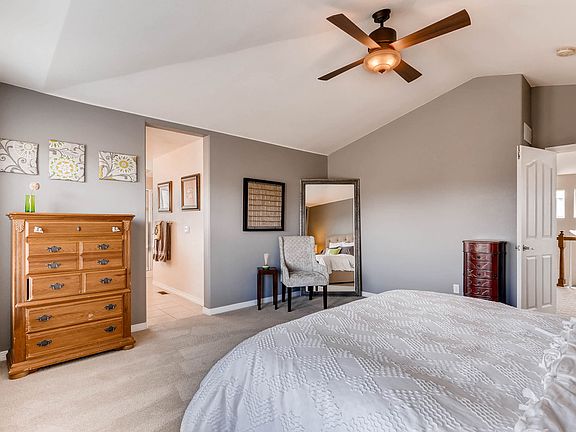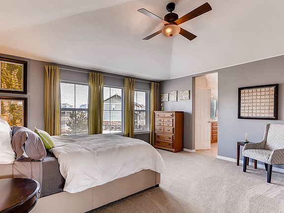 This incredible 4 bed 4 bath home sits on a great corner lot that backs to a greenbelt. The home has 3 car storage that is separated into 2/1 configuration. As you enter the home the beautiful dark hardwoods flow throughout the entire main floor. A formal dining room is well appointed leading into the large kitchen providing ample storage with 42 maple cabinets. The center island is a focal point. To the side of the kitchen is a half bath and laundry for easy access. The main floor rounds out with a large living room and the bonus being a main floor guest room with 3/4 bathroom next door. Upstairs you will find a large master suite with vaulted ceilings and a 5 piece bath, 2 more bedrooms, full bath and a loft. The backyard has a wonderful entertaining space, pergola and reservoir views! This home is a true gem in a fantastic community with reservoir access, amazing clubhouse, pool, tennis, and trails everywhere. This home in Cherry Creek School District should not be missed!