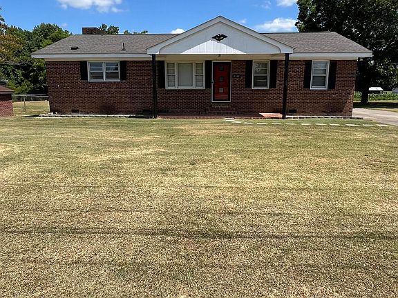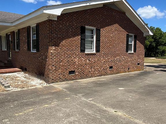 This brick ranch is located on over 4.5 acres with formal living room, open kitchen & den area and 2 car carport. Comes with detached brick building and fenced in side yard. Current owner is using as 3 bedroom, 2 bath. Owner is offering a $30,000 allowance with full asking price of $219,900. Back edge of property is in flood plain NO WHERE NEAR THE HOUSE.