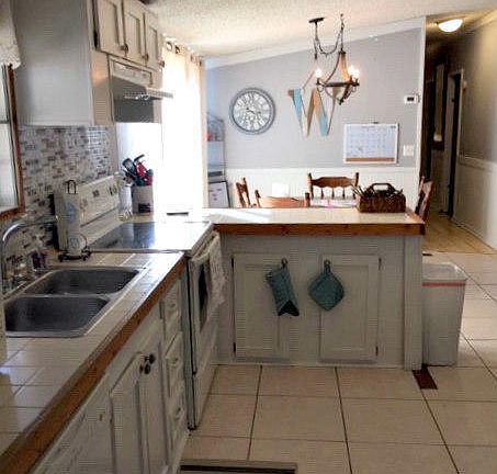 - Blinds, Breakfast Bar, Counters-Laminate, Open Floor Plan, Pantry, Window Treatment(s), Drapes