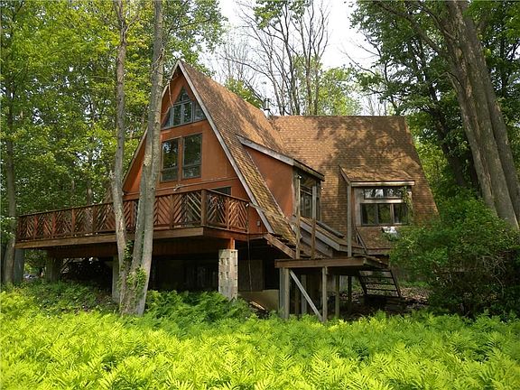 This level lake front property is located almost to the south end of Honeoye Lake and is accessed by a private drive; Lot is in need of major cleanup and tree work - mostly just overgrown; House had a water pipe burst while owners were in Florida; significant mold issues will need remediation; house is in need of major rehabilitation; electric heat on first and second level; four zone in floor radiant heat in walk out basement; basement has recent boiler - was intended for two additional bedrooms and recreation room; boiler also provides hot water; 1983 survey says lot is 100' wide; town record says 95.5'; plenty of potential; property next door sold for $480,000 in November, 2018; this will be sold as-is & must be a cash transaction; Do not enter property unless listing agent is present