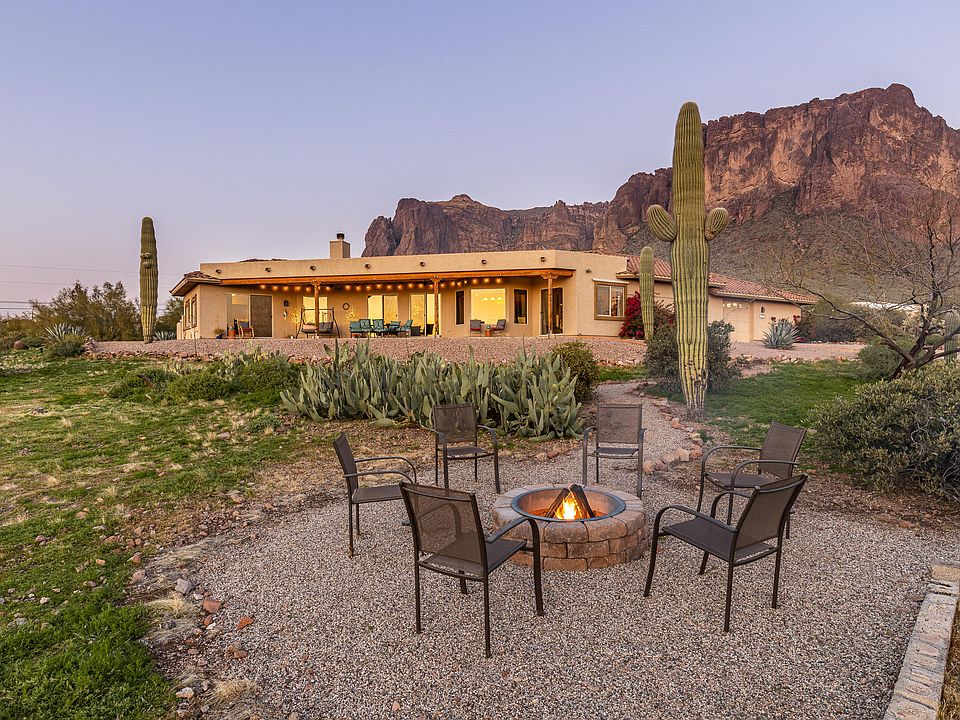 WOW***MAGNIFICENT SUPERSTITION MOUNTAIN and CITY LIGHT Views! Custom home on 2.5 ACRES! CHEF'S KITCHEN with DOUBLE OVENS, COOKTOP, HUGE ISLAND and GRANITE tops! VIEWS from almost every place! OPEN FLOORPLAN great for entertaining. GORGEOUS FLAGSTONE (yes, it's REAL!) FLOORS in main living space plus BEEHIVE FIREPLACE. Cozy, yet contemporary vibe in this SPECTACULAR HOME! Master Suite boasts a PRIVATE PATIO and SITTING AREA. Master Bath boasts JETTED TUB and snail shower! VERY GENEROUS 2.5C GARAGE has BUILT-IN CABINETS and DRIVE-THRU REAR DOOR. LARGE REAR PATIO and FIRE PIT seating are the perfect place to watch the sunset over the city! New Water Heater! This home is TRULY a ONE-OF-A-KIND! Must See...CALL TODAY!