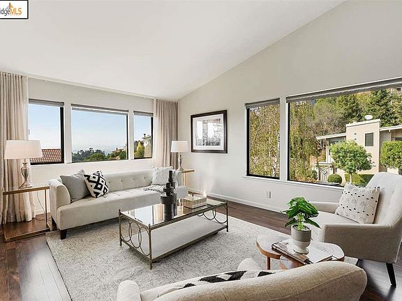 Stunning Jarvis designed remodeled contemporary home with bay and city views. Remodeled kitchen/family room leads to formal dining room and spacious living room, all with windows to the view and bathed in southwest light. The primary suite features an updated bathroom with glamorous soaking tub and has an additional door to the garden. A sleek remodeled bathroom in the hall serves guests. The entire home is surrounded by mature landscaped gardens, with a seamless connection from the kitchen to a flat patch of grass for play, and a patio for dining al fresco. Additional updates include a Tesla power wall, solar panels, and air conditioning. Rare additional driveway for your getaway rig - splurge on that Airstream, Oliver, or RV! MASSIVE storage throughout the home. Incredible expansion potential on the lower level with significant work already done by sellers - plans and contractor's bid for interior ADU included with sale. Thornhill elementary school based on location, buyer to verify.