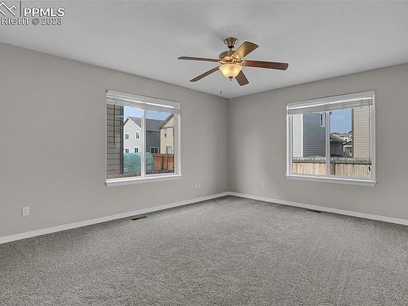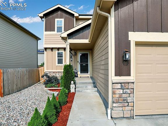 Welcome to this beautifully updated two-story home in the ultra desirable neighborhood of Lorson Ranch! Pull up to this adorable home and walk inside, where you'll immediately notice the fresh new carpet that lines the inviting living room, and the fresh new interior paint throughout the entire home. Adjacent to the living room is the dining room and a modern kitchen, both adorned with newer luxury vinyl flooring. The kitchen boasts chic white cabinets that provide ample storage space. The sleek Dekton countertops not only offer a stylish aesthetic but also ensure durability and functionality. Stainless steel appliances complete the model-quality kitchen. A walkout from the kitchen leads you to the fenced-in backyard with extended concrete patio. A half bath, and a mudroom/laundry room that leads to the 2 car garage complete the main level. Moving upstairs, the master suite awaits, offering a serene retreat with its en-suite 5-piece bathroom and a generous walk-in closet. Two additional bedrooms, one featuring its own walk-in closet, and an additional full bathroom complete the second floor. Head downstairs to the fully finished basement which has been built out to maximize living space. It features an additional living area that can be customized to suit your specific needs and preferences. The basement bedroom suite, non conforming, offers privacy and comfort, with its own private bathroom boasting a large, beautifully tiled shower, and separate closet space in the bathroom. This home boasts several noteworthy extras, including solar panels which will be fully paid off at closing which drastically reduce your energy bills, a water filtration system and a concrete walkway on the side of the house. Conveniently located close to Fort Carson and Peterson SFB, and Shriever SFB. Easy commute to the Powers corridor dining and shopping amenities and Mesa Ridge Parkway shopping amenities. Come see it today!!