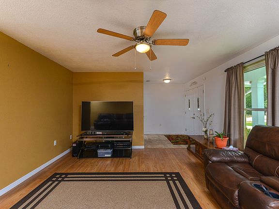 Buyer changed their mind for no reason so this home is on the market! Pool, pool, pool! This 4 bedroom, 2 bathroom home features a 2 car garage, gorgeous pool and split floor plan. New windows, solar, Heat pump and air handler were updated in 2018. The electric service, pool pump and filter, pool heater, and range all new from 2019 too. This home is immaculate from the outside to the inside. Huge living room dining combo with sliders to the pool with new screens which will make entertaining a breeze. The galley style kitchen features a serving window to the lanai, wooden cabinets, tiled counter top, appliances, and ceramic tiled flooring. The small family room features a wood burning fireplace, ceramic tile flooring and is central to the home. The large guest bathroom has a wood vanity, formica counters, tub/shower combo , and ceramic tile flooring. Just down the hall are the 3 big guest rooms which have plenty of closet space laminate flooring and new light fixtures. The master bedroom is located just off the dining room and features sliding doors with screens to allow private access to your pool. The master bath has a tub/shower combo, tile flooring, wood vanity, and formica top. Be worry free with this home! Septic emptied and inspected 10/2020, Led bulbs throughout with newer light fixtures, new sprinkler heads, new gutters, garage pedestrian door and so much more! This home will not last and is truly a must see!