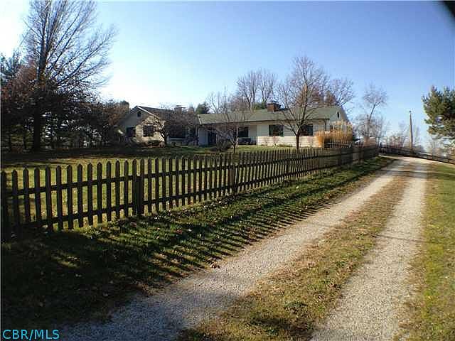 Charming Ranch on 4 acres close to the city! Awesome greatroom addition w/cathedral ceiling & skylights w/view to serene back yard. Remodeled kitchen w/granite countertops & beautiful cabinets. Adjoining breakfast room w/built-in custom cabinets. Cozy livingroom w/ wood burning fireplace w/insert. Large master w/walk-in closet. Fenced yard, add'l outbuildings,GEO-THERMAL heat! Partially finished basement w/wood burning stove & large workshop. Lots of trees and grapevines too!