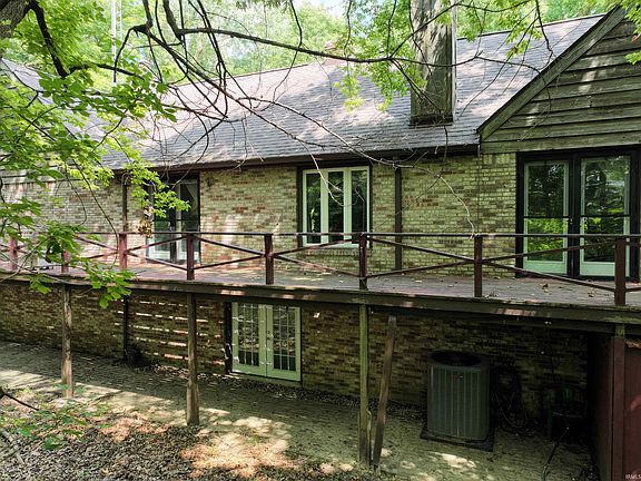 PRICE REDUCED!!!! A beautiful lake house and guest cottage are waiting to be yours! Private lake Freeman retreat nestled within 4.3 acres of Primeval woods along a lovely 369 ft waterfront. This 4 bed 2.5 bath brick ranch is spacious with a high vaulted Redwood cathedral ceiling, natural stone fireplace, wood burning stove, and more. Enjoy a 75 x 8ft walk out from the basement with a private view of the woods and lake. The upper level boasts a 8 x 75ft deck with an exquisite view of the same with access from the Master suite, Great room, and Dining room. Updates include HVAC, water heater, casement windows, and flooring. A concrete drive leads you the down a hill to the dock and water so you can enjoy your seclusion. The abundant wildlife that calls this home includes Bald Eagles, pileated woodpeckers, wild turkey, and many many Deer. An older small guest cottage at the bottom of the hill has one bedroom, one bath, and a kitchen with dining area. One family has owned this home for over 96 years, it has never been on the market and is truly a rare find. Come see for yourself!!