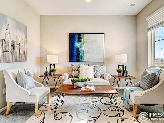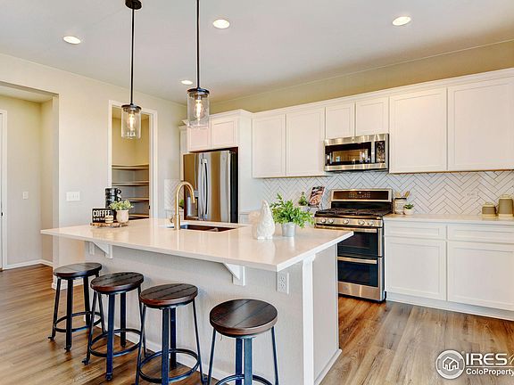 Come see this incredible home. It has an amazing brand-new landscaping with sprinklers in both the front and back yard, making lawn maintenance a breeze. The backyard also features a covered porch, perfect for enjoying peaceful evenings and outdoor gatherings. Inside, you'll find a stunning open floor plan that seamlessly connects the kitchen and living room. The kitchen is equipped with high-end GE appliances and features beautiful white cabinets and elegant quartz countertops. Upstairs, the primary bedroom offers ample space and a private bathroom that showcases two sinks, a spacious shower, and a large walk-in closet. The convenience of having the laundry room on the second floor cannot be overstated. There is also a versatile den area that can be customized to fit your needs, whether it be an office space, a playroom for the kids, or a game room. With its location close to I25, commuting to nearby cities such as Denver or Fort Collins is convenient and easy. The Silverstone subdivision provides a community park and walking trails for residents to enjoy. Don wait!, and don't miss the opportunity to call this gorgeous property your NEW HOME. Contact us today for more information and to schedule a showing. Don't miss out on the opportunity to call this amazing 2-story house your home. Contact us today for more information and to schedule a showing.