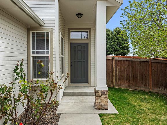 This charming, single level home is tucked away in a culdesac in the desirable Hazelwood Subdivision and sit on .23 acres. Home includes 3 bedrooms, 2 full bathrooms, and a 2-car garage with extended space and a wash sink. The open floor plan is excellent for entertaining. The large, open living room extends into the kitchen and eating area. The living room includes vaulted ceilings, top to bottom windows, and a cozy gas fireplace. Bedrooms 1 & 2 are set apart from the primary bedroom and include window seats. The primary bedroom includes a large walk-in closet and dual sinks. You'll enjoy spending time out on the extended covered patio. The yard is fully fenced and landscaped, and includes a dog run area and storage shed. New furnace and AC unit installed in 2023. New water heater installed in 2023, and new exterior paint in 2023. This home is move-in ready and is a must see!