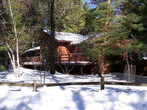 Step inside this 3 bedroom, 2 bathroom charmer and see if you don't agree that it's conducive to warmth and hospitality and a simple, natural beauty that makes it one with the forest. The vaulted, wood beamed ceiling in the living room and dining rooms give this home the air of a lodge. There are abundant ceiling fans to keep the air circulating, whether it be winter or summer. Heat pump, wood stove and pellet stove. Inside the kitchen you will find tiled counter tops, numerous wood-grain cupboards, a spacious pantry, slide-out shelves, a Jenn-Aire stove top, a built-in microwave oven, a newer over-under refrigerator, a dishwasher, and garbage disposal. The master bedroom opens up, via sliding glass door, onto the front deck. Diagonally cut cedar panels grace one interior wall. The master bathroom boasts a deluxe tiled shower stall. Both bathrooms feature 2 light sources, exhaust fan and heater fan. Other amenities include skylights in the kitchen, dining room and master bathroom, walk-in closets in two bedrooms, and Pella brand windows and slider doors throughout. Laundry hook-ups 2-car garage. Also, for extra storage, there are convenient shelves that line the length and height of one entire wall of the garage. This home is located in a clean, quiet, established neighborhood. The asphalt driveway is circular for easy access and exit. This house is a gem. It's definitely a must-see! The tenant will be responsible for paying all utilities, including water, gas and electric. There will be no smoking allowed inside the house. The grounds will be maintained regularly (every week), or a landscape gardener will be hired at the tenant's expense. Pets under 20 pounds will be considered.