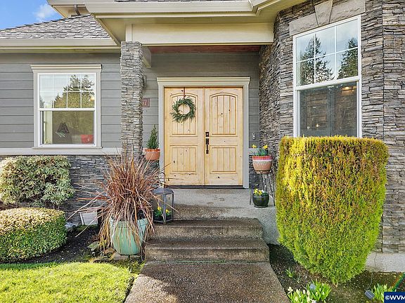 Nestled just a stone's throw away from Creekside Golf Course and wineries, this corner lot gem is in a prime location and NO HOA. Fully landscaped with a rock fountain water feature. Deck seamlessly attached to a custom sunroom, offering the perfect setting to bask in the serenity of the surroundings or entertain guests in style. Giant bonus room with mini wet bar. Open kitchen with joining living room, built in sound system, gas fireplace, high end shades. Your dream home awaits!